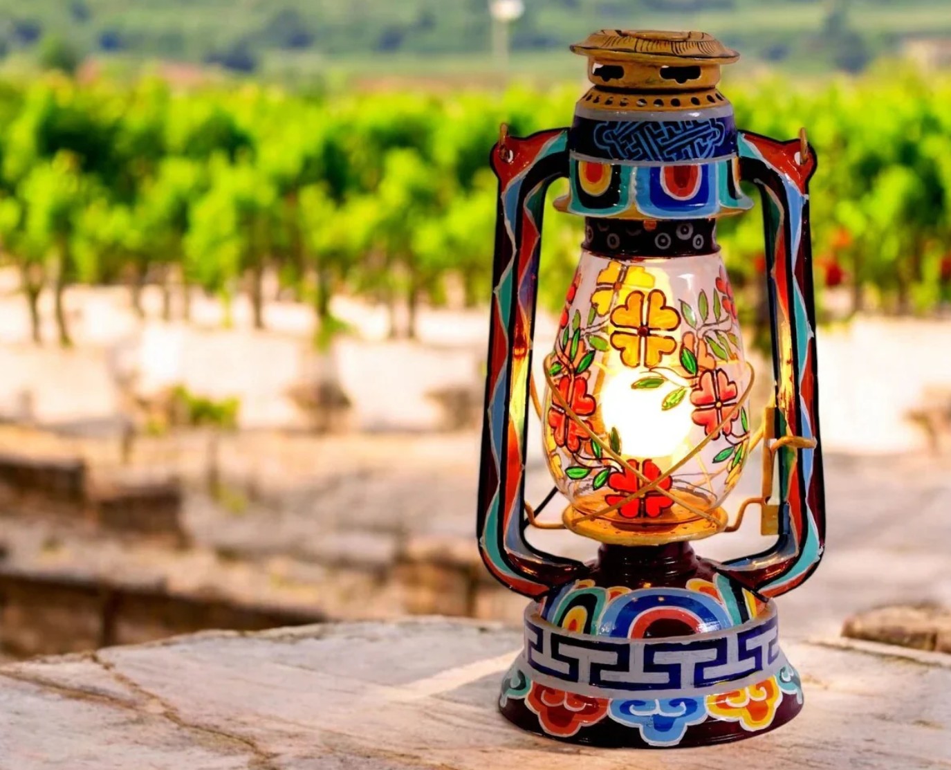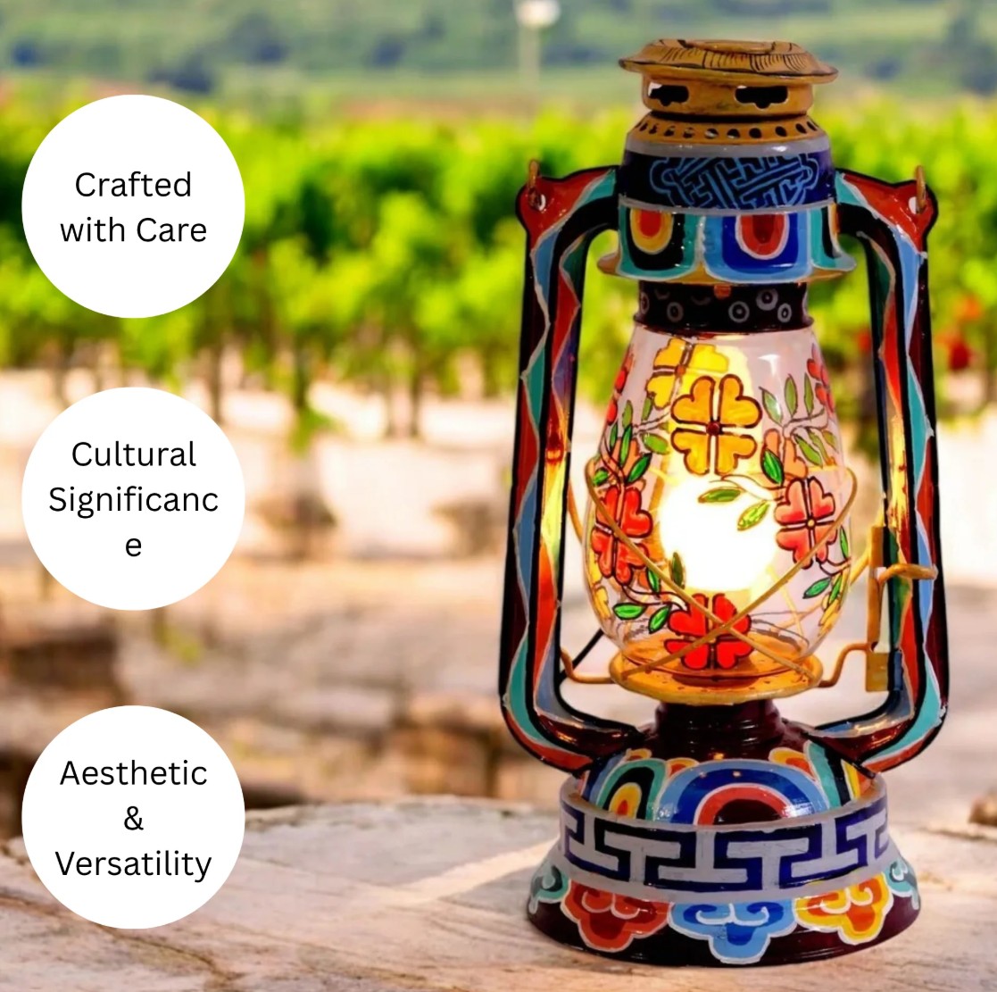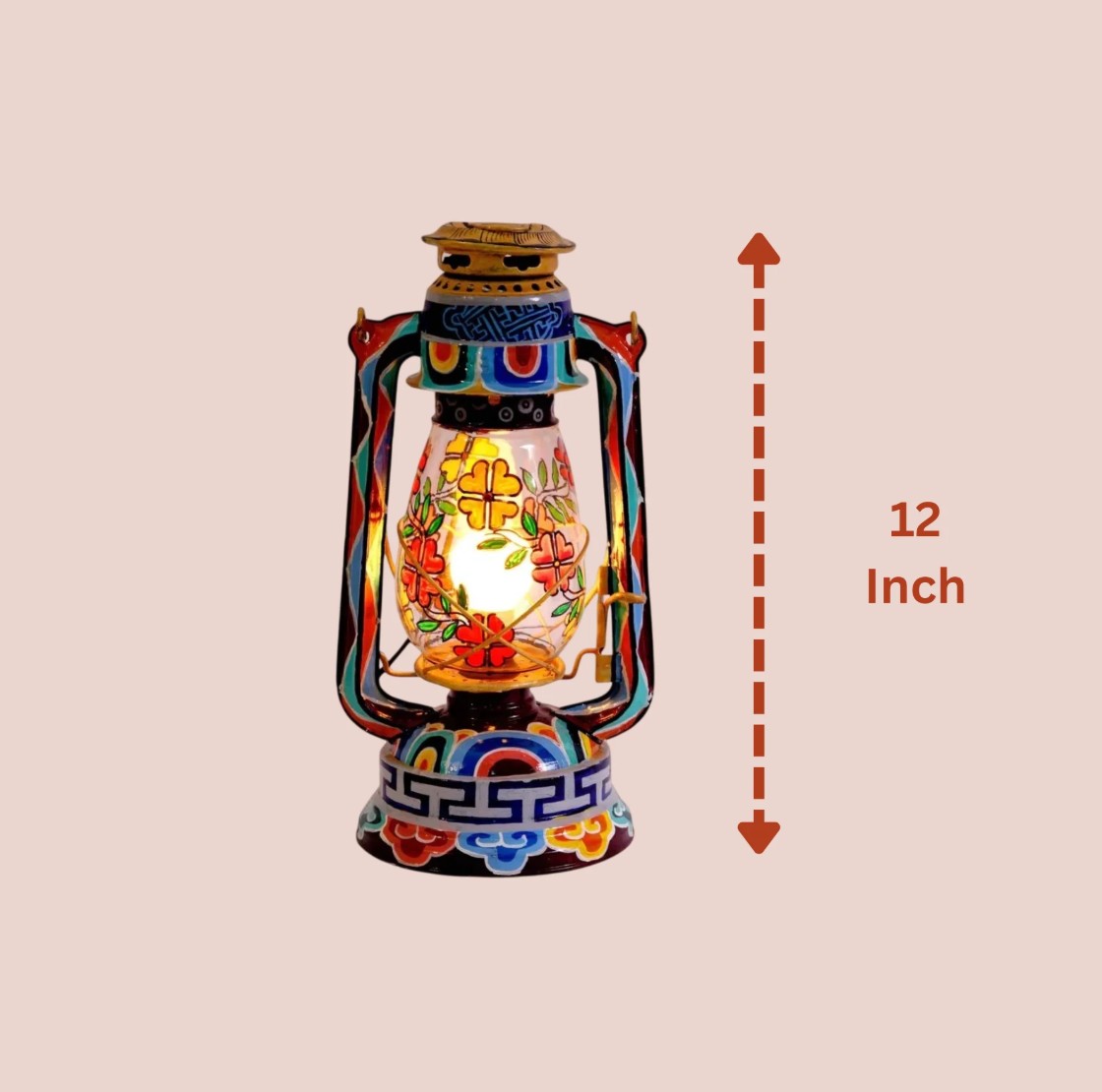 Traditional Multicolor Hand-Painted Hanging Lantern – Decorative Lalten with Light Holder