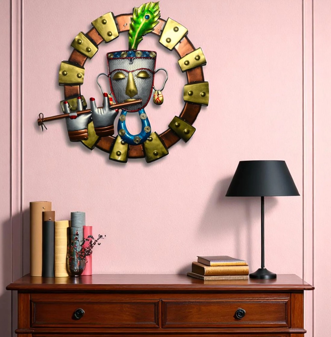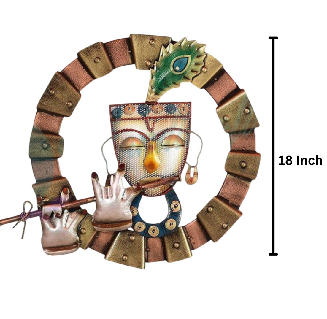 Metal Lord Krishna Wall Mounted Hanging – Spiritual Wall Decor